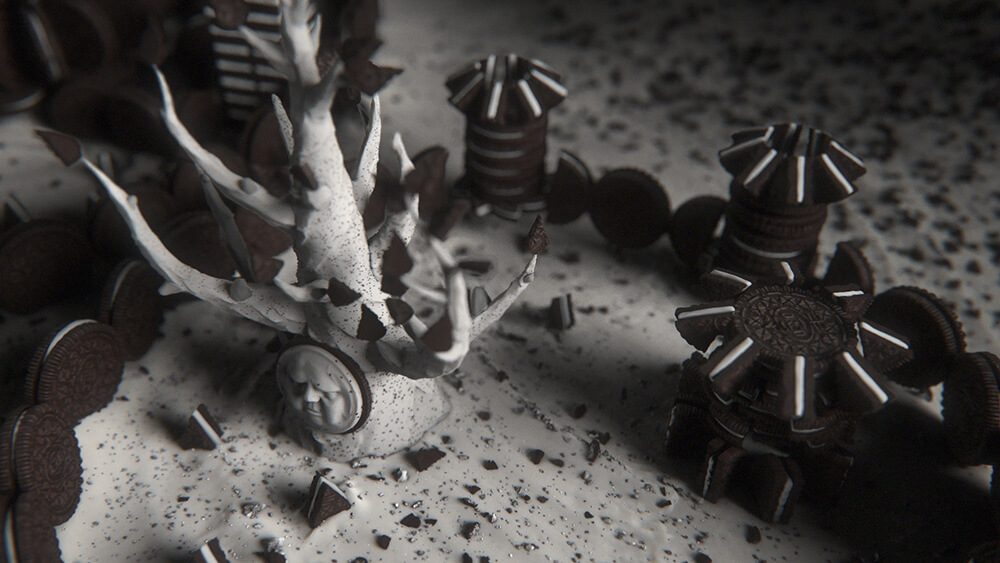 To announce the new cookie, OREO and its creative agency 360i collaborated with Elastic – the creators of the Game of Thrones opening sequence – to conceive an OREO-fied version of the opening credits featuring an animated landscape built entirely out of 2,750 OREO cookies.