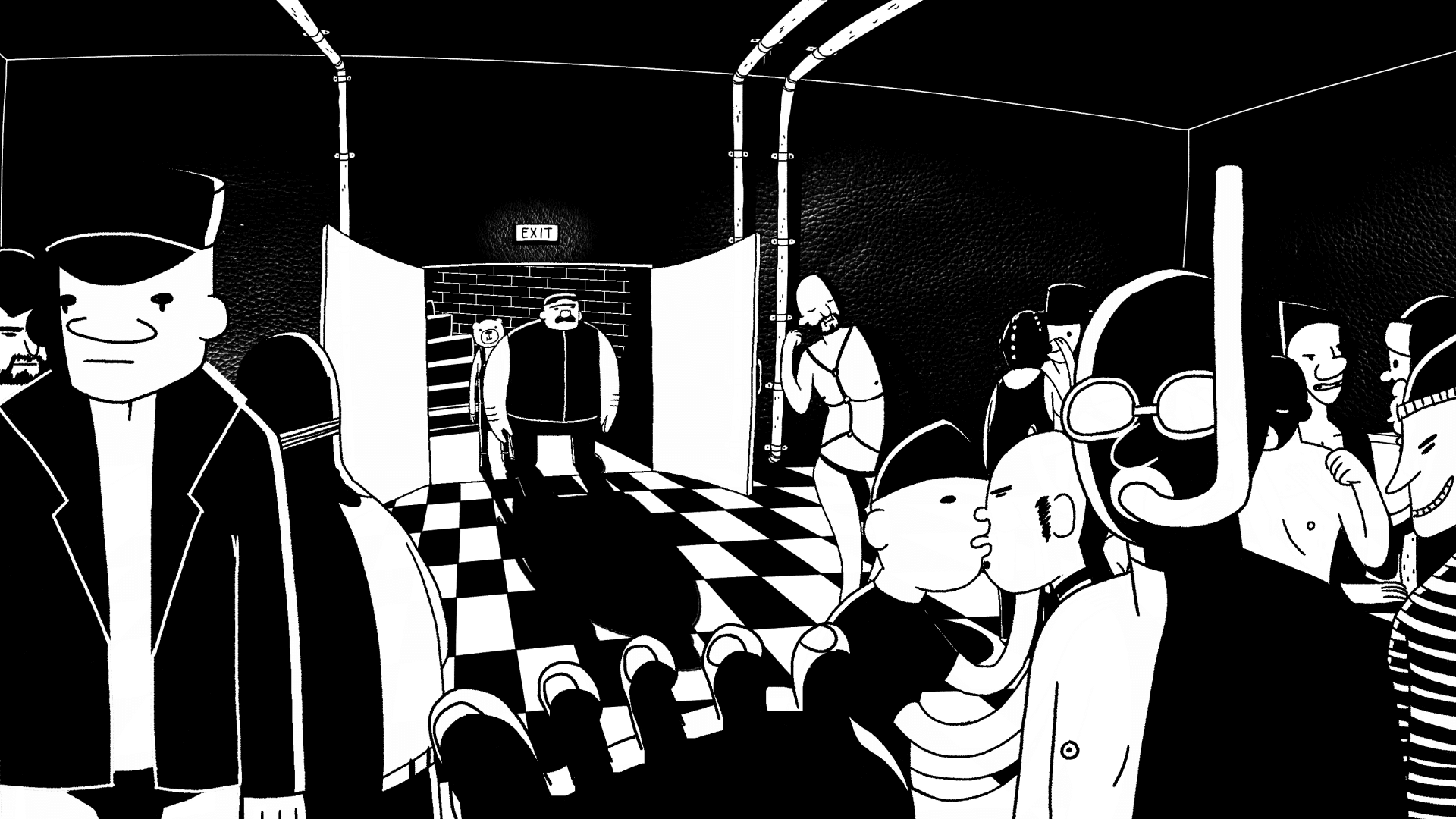 Pipes is about a plumber that needs to go fix a pipe in a gay fetish club and he goes on an adventure in there.
