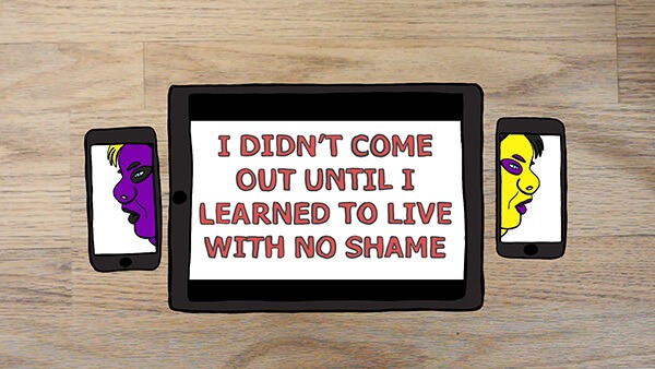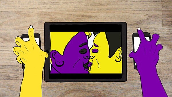 I like the idea of a people coming out online. When I initially envisioned the film, it was going to be animated but I was going to put the animation on a phone and then film the phone. And then I had the great idea of animating things around the phone as well. I thought it would be interesting to put it on a dating app or in a YouTube video. People will be out on dating apps with their sexuality and also a lot of people make YouTube videos about neurodiversity and sexuality. So I thought that would be great way to represent that.