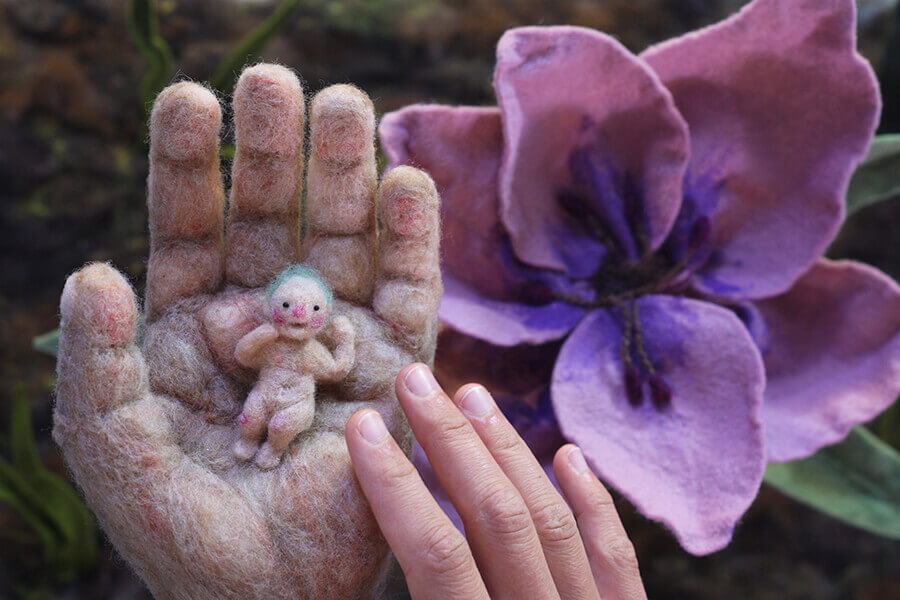 PW (Phoebe Wahl): Almost all of Tulip is animated with needle-felted wool. Andrea is an incredibly skilled fiber artist, and I have experience in fabric sculpture and sewing, so together we were able to create almost everything in Tulip from textiles and fiber, which gives a quite literal warm & fuzzy feeling to our film!