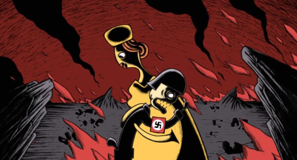 I’m more than just a fan. Regina’s work had a huge influence on my work, in a weird way. I saw her debut, The Night, in 2000, the same year that my film Ring of Fire came out. Both films had these “scratchy” elements, only her scratches were full of life, while mine were just stiff. So I thought: I’ll leave the whole scratching thing up to her, because she is obviously the queen of scratch. So I turned to simple stick-figure-with-flat-colours kind of stuff, but 15 years or so later I needed that scratchy element. So I phoned up Regina and asked her if she wanted to support my film. Not only did she agree, but she also got her partner Abi Feijo on board, who secured the Portuguese portion of the funding. So Regina could work with her team in Portugal. And I had the pleasure of visiting the studio and Regina and Abi and spending some time in their garden of Eden. I became friends with their rooster and baptized him Charles.