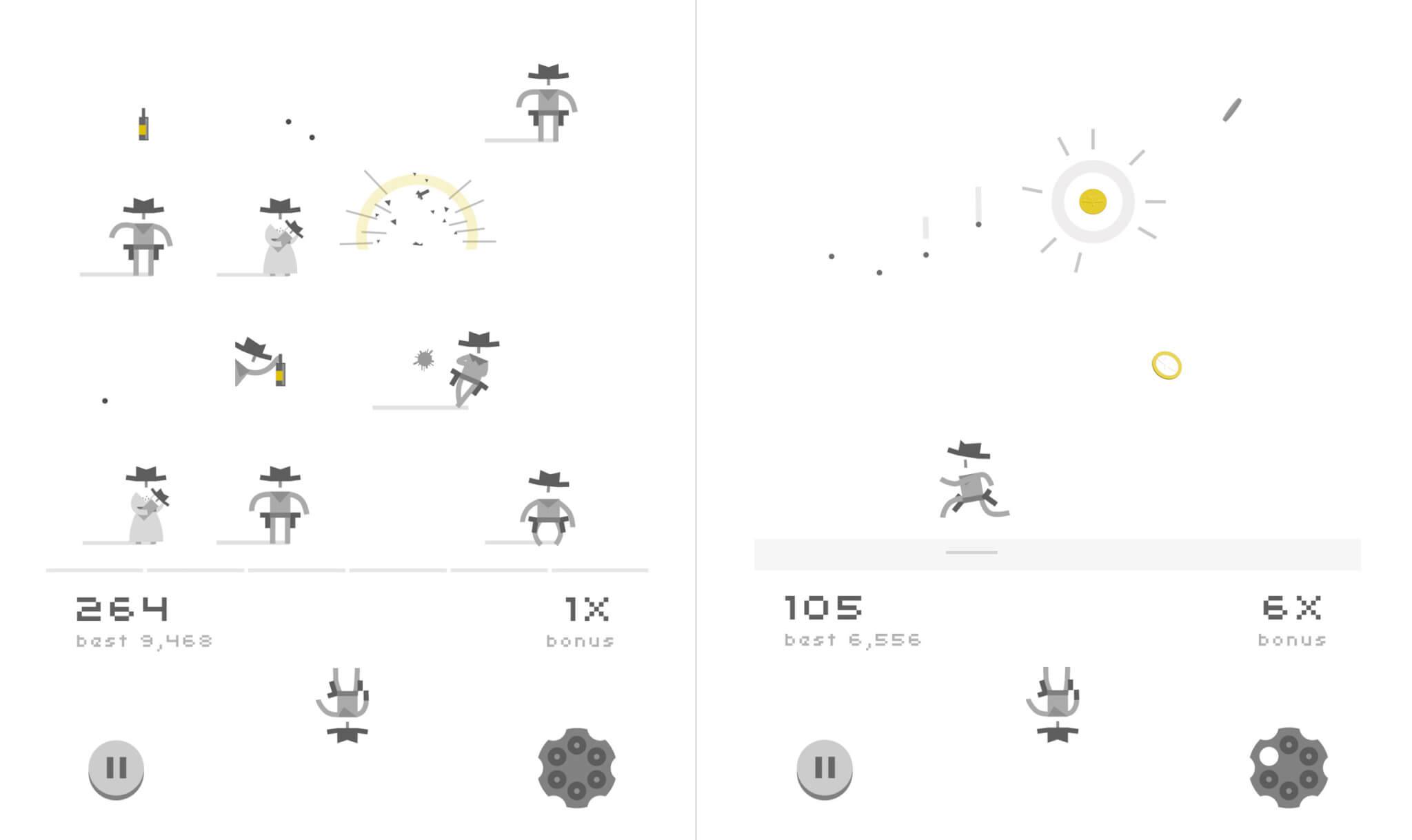 Two and a half years ago we sat down for a daytime pint in Hoxton Square to discuss making a short film. We ended up getting very excited about the possibility of making an iOS game. A few drinks later we had settled on the concept of a simple, reaction-based dueling game. We headed back to the studio and jumped straight into designing the cowboy.