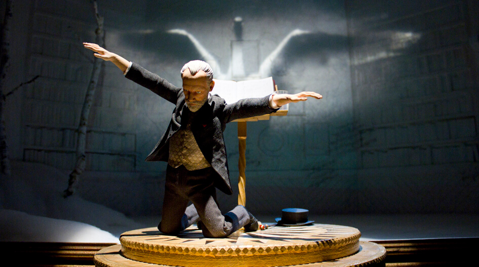 When Barry Purves gave a talk to the audience gathered in Halifax for Creative Calderdale (Part One of “Barry Purves – Respect the Puppets!” can be found here), he began explaining the nature of working with puppets, particularly how their rigid physicality can sometimes add creative complications when a character simply cannot get in the pose as planned in the storyboard. This caused him to explain how he would have to spontaneously adjust the puppet in a way that both accomplished the intended performance as well as worked for the puppet. He said that you cannot force a puppet to do what it does not want to do. He began repeating, “Respect the Puppets! Respect the Puppets! You must respect the puppets”. Not only does Barry Purves have great respect for the art form, but also he displays respect when he is animating a puppet. This is certainly the case with the second of Purves latest work we are highlighting “Tchaikovsky – An Elegy”