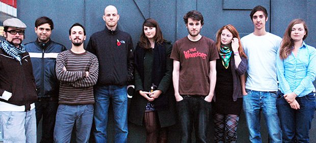 A Large part of the production team (From left to right): Eduardo Serrano editor, Leo Ferreira DPP, Mauricio D’Orey sound editor and mixer, Andrew Start producer, me director, Sam Turner animator, Toni Lowe production designer, Lennert Busch composer, Maja Zamojda cinematographer.