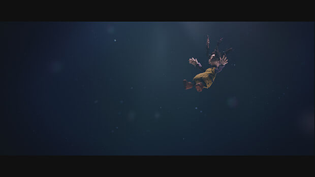 Of course part of it I based on own experiences. The hollowness left after a loved one is gone. How you just can’t stop crying yourself to sleep at night, while still having to function during the day. And when I was 5 I fell myself into a pond while playing ghost. Though I remember my initial panic I also remember the calmth that creeps over at some point. Based on those experiences of myself and others we edited the initial animatic.