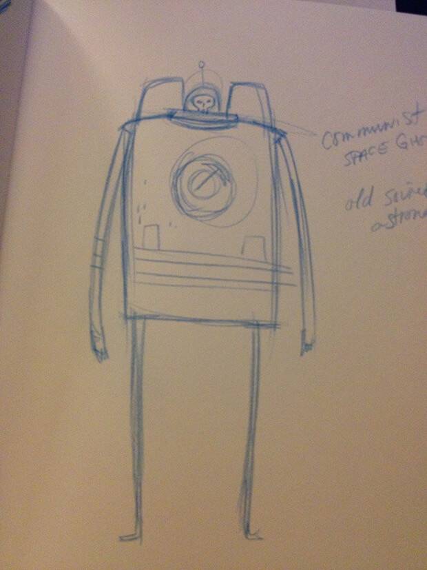 Brett: Yeah. So I’d been doing some drawing the night before and I had drawn the Soviet Space Ghoul whilst watching TV and really liked it. I went to bed, and I don’t normally have any problem getting to sleep but I couldn’t get to sleep and kept thinking about it, thinking there’s something there. So I stayed up and started working throughout the night, fleshing it out from the character. Then the basis for the show as it is now was created by morning. I emailed it of to Morgan, just as she was heading up to this meeting and I was like, screw what we have, pitch this instead – it’s way better!