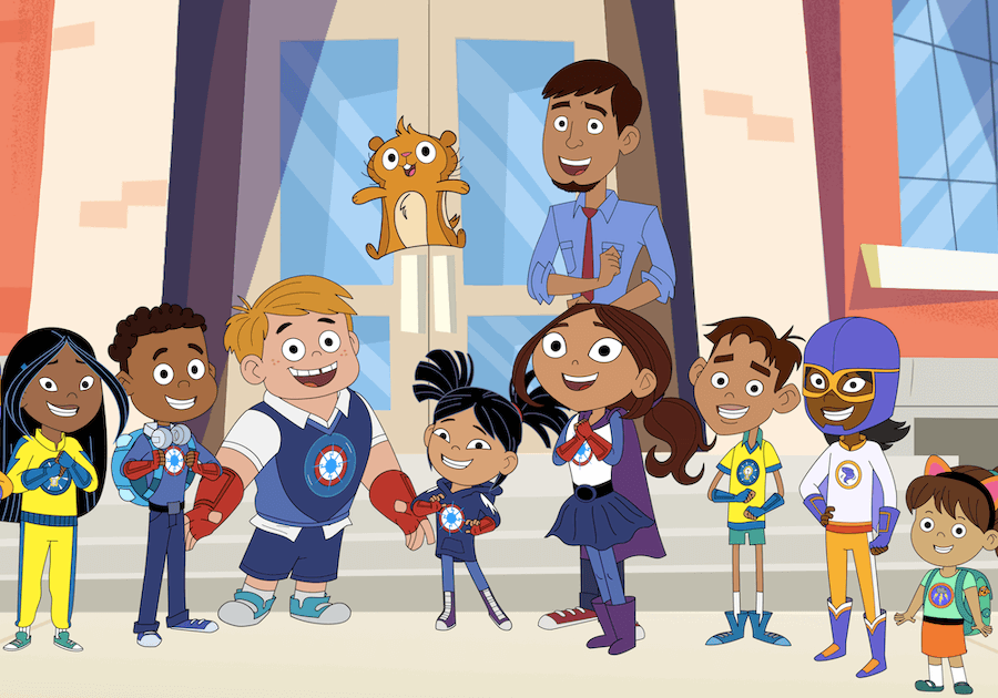 The show was funded by the U.S. Department of Education’s Ready To Learn grant, awarded to Twin Cities Public Television. The proposal sought to use a book, Superhero School, to inspire the STEM-focused initiative. We were brought on to develop the TV show as part of the project. The book had a math focus, so we really had to start from scratch to build a show idea around a STEM curriculum. But coming from Sesame Street, we were so excited about the hook of superheroes to engage kids. We spent our careers learning how to embed all kinds of the curriculum into content using the tools of lovable characters and humour, as how superheroes should make our jobs easy, right?