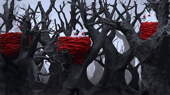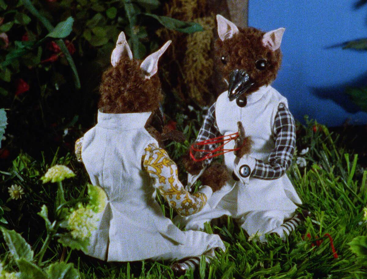 Once again, we’ll visit the surreal landscapes inhabited by Cegavske’s puppet creations. Her artistic lens is perhaps unique in its ability to magnify the lives of small creatures, playing out the extreme emotions of animals which live in sheltered dwellings. In Blood Tea, we met with the oak-dwellers, who live beneath the hollowed-out trunk of an oak tree. These animals have beaks yet exert a mammalian tenderness. Their peaceful existence is thrown into disarray when the object of their affection (a doll) is stolen and they must embark on a quest to reclaim it.