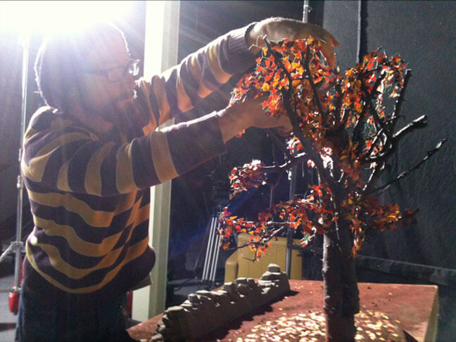Originally I wanted to make the birds more realistic- with actual feathers. There was talk of taxidermy and skinning budgies at one stage but in the end it was working out to be to costly, both morally and monetarily. So we went with felt. I guess I’ve always been more drawn to a tactile approach, probably because I love making things. Theres a real satisfaction in building something or carving something out of something, even driving a nail through a plank of wood has a certain satisfaction. I don’t think FEAR OF FLYING would be quite the same had it been rendered in 3D. There’s a charm and an imperfection in making something real that you just don’t get otherwise.