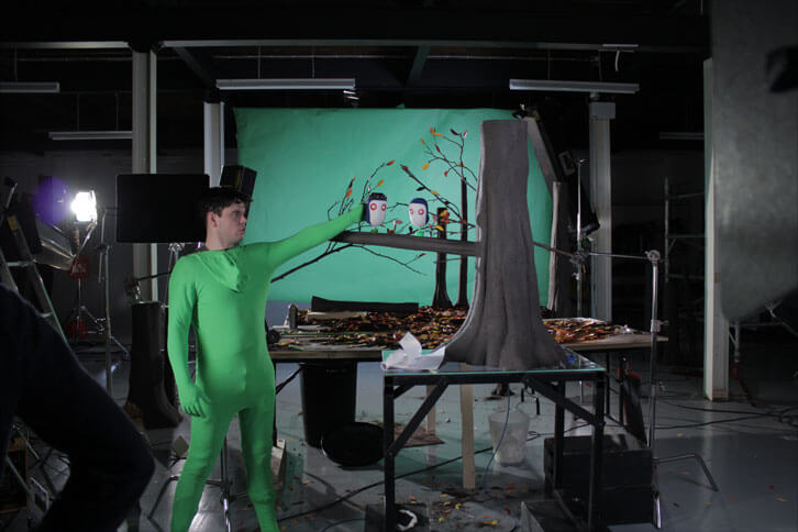 I was lucky enough to get funding under the Irish Film Board’s Frameworks scheme. I wanted to make it using a mix of live action puppets and 2d/ 3d animation. I did the character designs and then carved the character body shapes out of blue foam before giving them to Rentate Henshke to cover in felt. She did an amazing job! It took about nine months to make it from script to screen. The sets were built by a couple of brothers in Wicklow called the Fallovers. I think we ended up with 13 or 14 different sets/ locations in the film that we shot over a five day period. After that everyone working on the film was working remotely in different parts of the world. There was a 3d animator in Germany doing the lip/ beak sync animation, a guy in South Africa doing the 3d beak composites, a friend here in Dublin did all the 3d tracking/ rendering and I did all the 2d animation, compositing and roto. Meanwhile ECHOLAB were working on the music and sound design. Its weird to think about it but at no stage did any of us meet up- it was all done over the internet.
