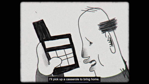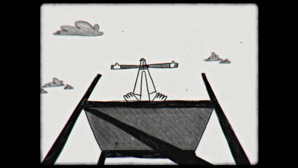 The almost brutalist minimalism of the design, with its heavy emphasis on block shapes, texture and lack of colour, is in one regard an efficiency measure by Conor to aid in both the storytelling and animation. However, the design also lends the film an elegance that is demonstrated throughout the film, perhaps most succinctly in the opening credits in which every word of the title is connected by a single line, symbolising both the connective tissue of the story and the titular nail. This works in tandem with the humour of the film, which allows the audience to react to its darker and grander themes. Born from a promise made by an artist to themselves to continue to explore their own work after leaving art school, The Final Nail in the Coffin demonstrates a commitment to creative development and pursuing one’s own artistic voice alongside industry work.