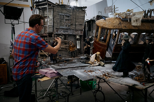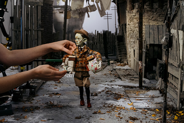 Brigitte Henry was intimately involved in the research phase, and during production her particular responsibility was procuring props from antique markets and websites, as well as scanning or creating objects for 3D printing. She was also involved in shooting the animatic and the sets. Special mention should go to Yso South, who helped design and build most of the costumes. As with all our films, we were responsible for sculpting puppets, designing and building sets and props, lighting, and for applying the final patina, dust, and dirt to every object and character that appeared on screen.
