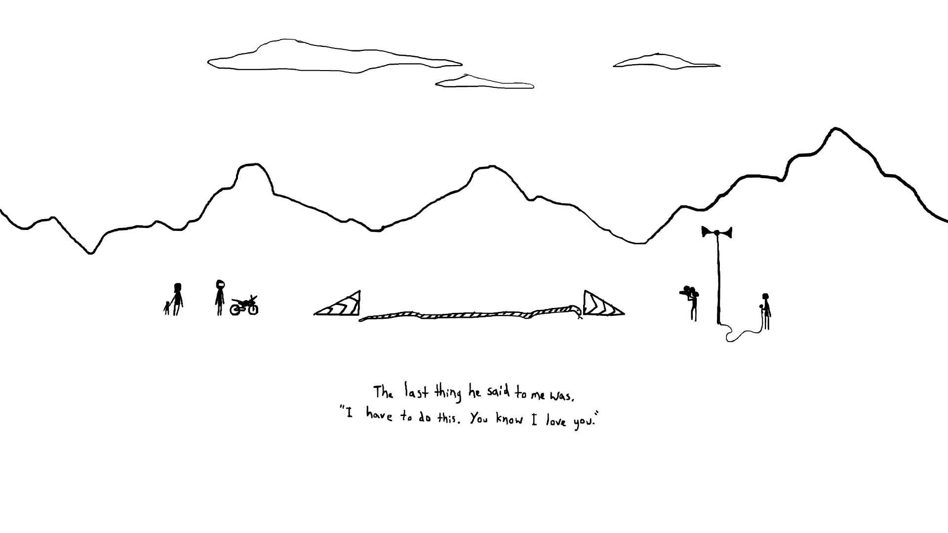 The metaphor in the film of the bike jump was just from a little drawing I did that popped into my head one day. Then I was in America when I wrote it, which I think suited it really well because I think they’re more projective of their emotions.