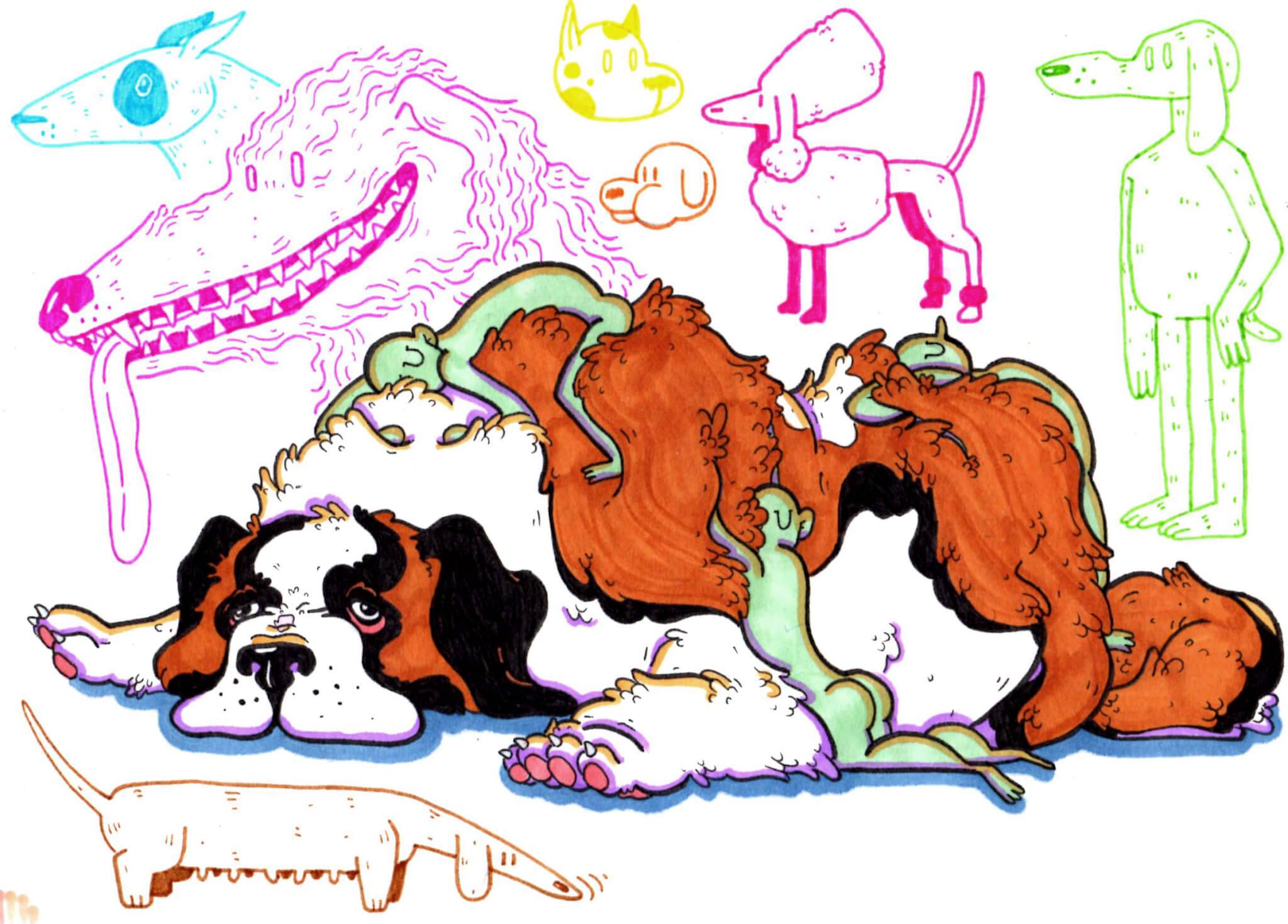 Yes Adventure Time is obviously a big influence, it’s a beautifully made show and flippin’ hilarious, though for HOUND my major influence was Reka Bucsi and her short Symphony no. 42. I’m also very much influenced by my peers from RMIT and Melbourne such as Felix Colgrave, Nikhil Markale, Aggelos Papantoniou, the Rubber House fellas and a bundle more.