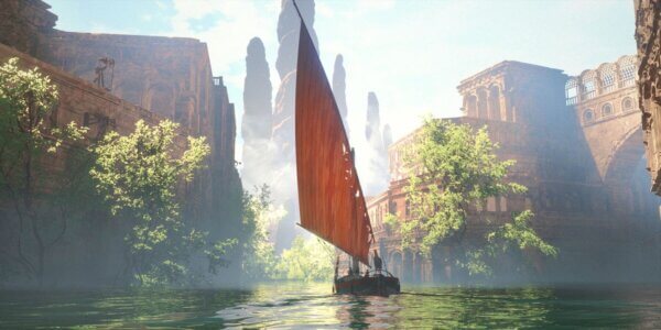 I wanted to create that sense of adventure and evoke a sense of curiosity and amazement that the cat would feel where everything is unexpected and interesting. It’s not really set in our ordinary world, it’s meant to be very timeless. It could be set in recent times, or it could be set a very long time ago. The environment is a big part of the storytelling, because we have to use it to make the audience feel what the characters are feeling. I knew that the film would be set in a boat, but I didn’t want it to be set in some ocean where there’s just the wide horizon, so by having this flooded world where we see all these monuments and relics of the past, we can have a big variety in the environment so it doesn’t feel claustrophobic or repetitive. I didn’t want to explain it all. I wanted to leave some clues for the audience so they I think about what might have happened here, they have to actively participate in the story.