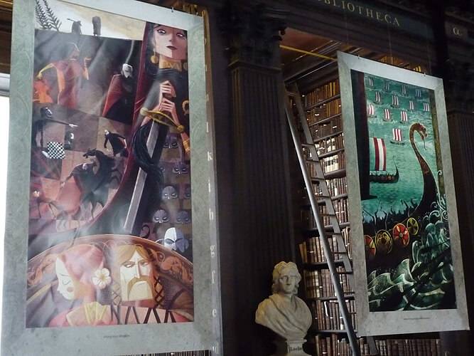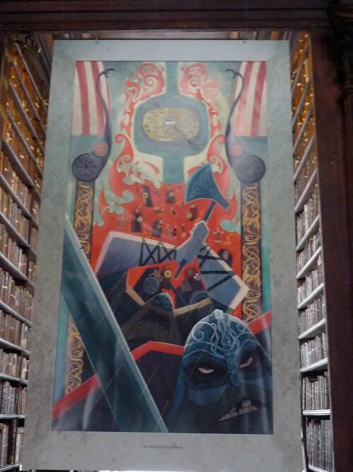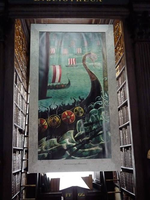 In the Long Room at Trinity College Dublin is a new exhibition to commemorate the millennial anniversary of the battle of Clontarf and the Emperor of the Irish, Brian Ború. Some of you may have heard of the Book of Kells, housed a floor below, from the Academy Award nominated film The Secret of Kells by Cartoon Saloon and thus appreciate that it is Cartoon Saloon who have helped to tell the story of Brian Ború through a series of illustrations in this exhibition.