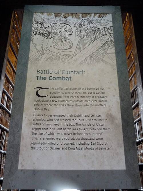 In the centre of the room runs a long exhibition case holding many Irish treasures; the Book of Leinster, the Brian Ború harp and a 9th-century decorated manuscript known as the Book of Armagh – the only item known to have been in Brian’s presence. The exhibition runs until October this year, so if you’re in Dublin at all, taking a look is highly recommended!