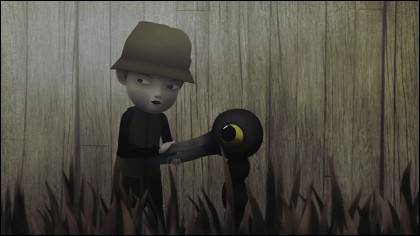 Five years on from the success of Skhizein, his new film Palmipédarium evokes the familiarity of growing up in the country; The misty mornings of rural life, the hunt, the smell of dew on fresh wild grass are all part and parcel of living off the land. The story follows a young boy who is being taken out to hunt, learn the way of his father and become a man. Later, whilst pondering life by a pond, he meets a strange, birdlike being in the woods who he, in empathy, seeks to help.